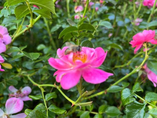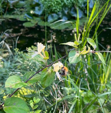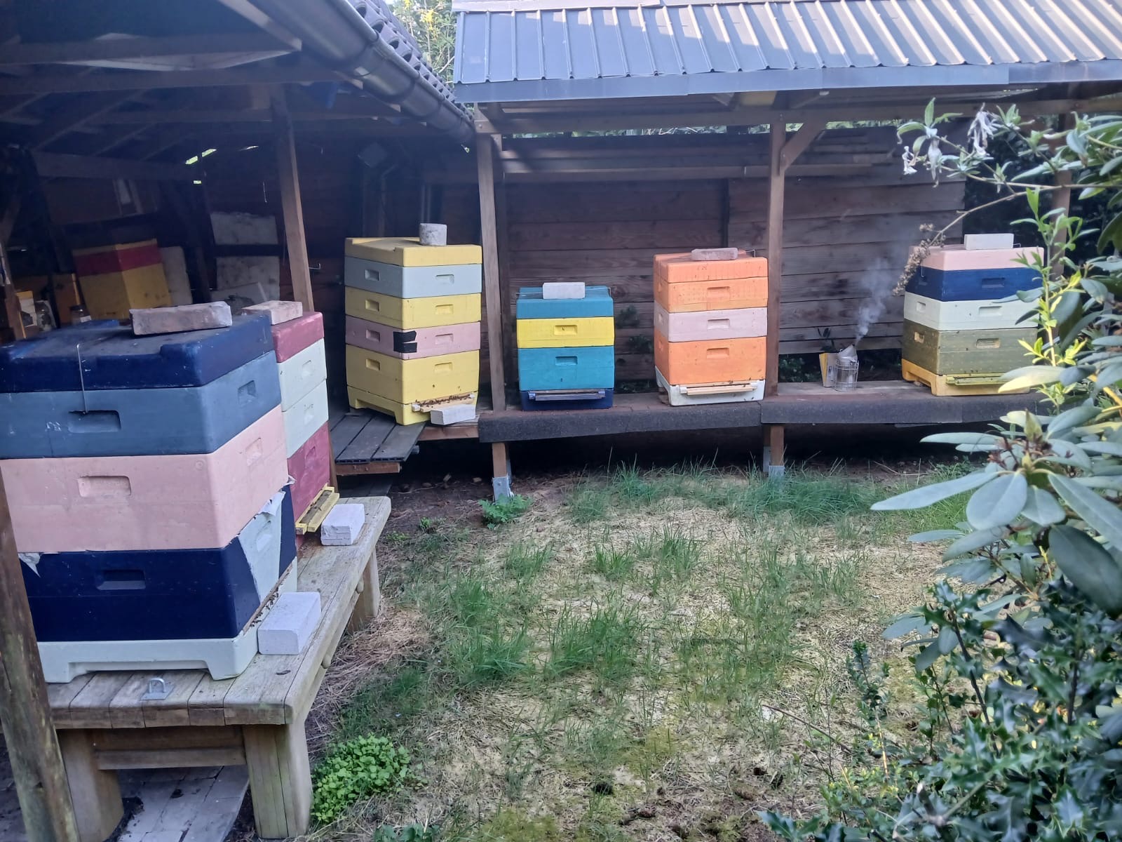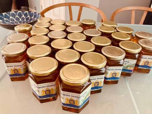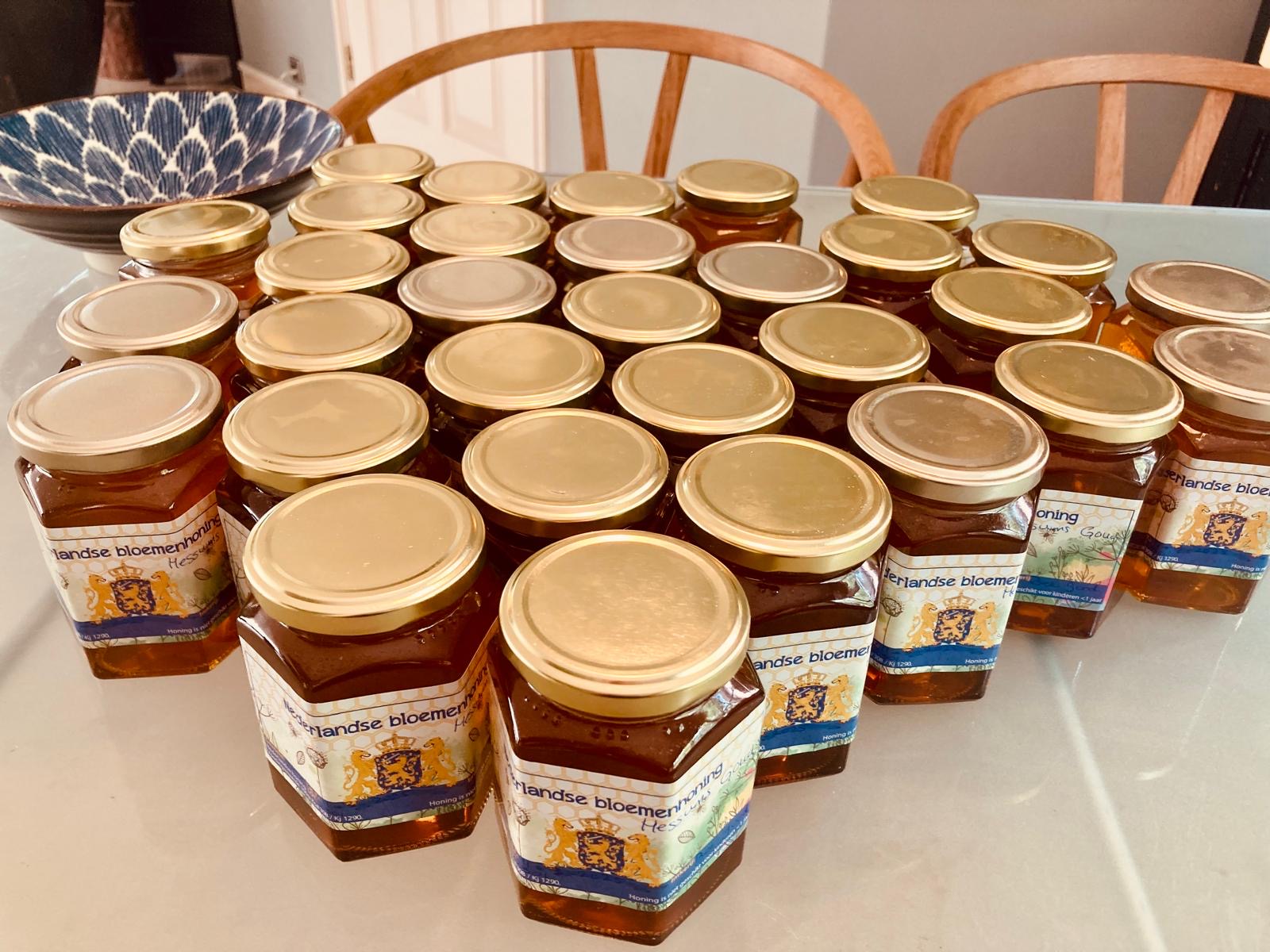 Daarnaast houden we bijen die in een kleinschalige imkerij elke jaar weer heerlijke honing leveren maar vooral ook belangrijk werk verlenen als bestuivers voor bloemen en planten in de buurt. Dat kunnen ze eigenlijk alleen als er een gezonde natuurlijke omgeving voor handen is waarin in een straal van 3 klm nectar en stuifmeel aangedragen kan worden.